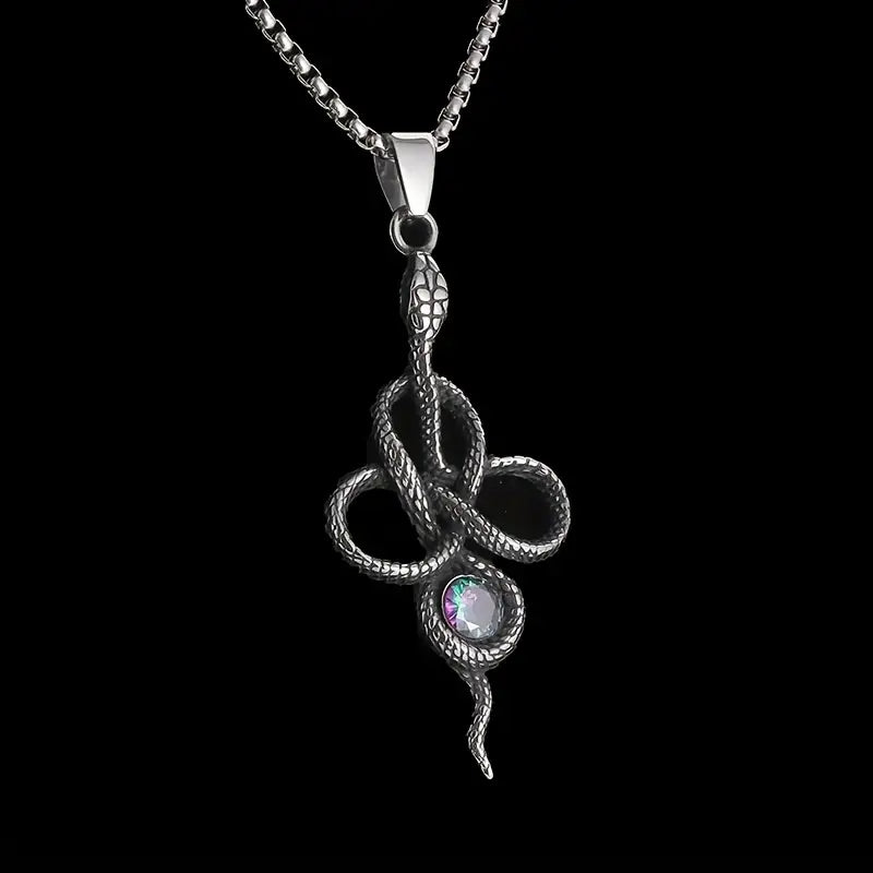 This Guardian Snake necklace features an intricately designed serpent pendant adorned with a sparkling zircon gem, symbolizing protection and wisdom. Crafted for durability and elegance, it offers a refined accessory that carries both aesthetic appeal and symbolic significance. Ideal for those seeking a meaningful piece that combines craftsmanship with a touch of mystical allure.