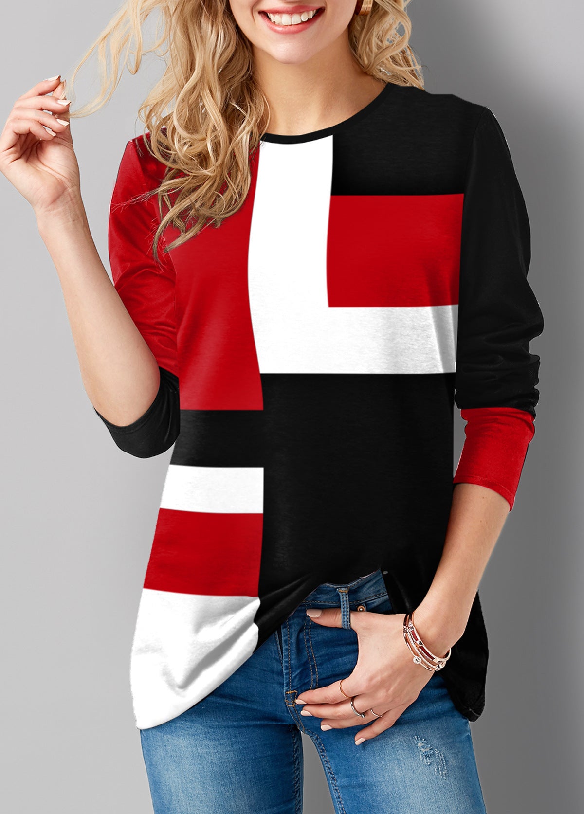 Ladies Print Round Neck Long Sleeve