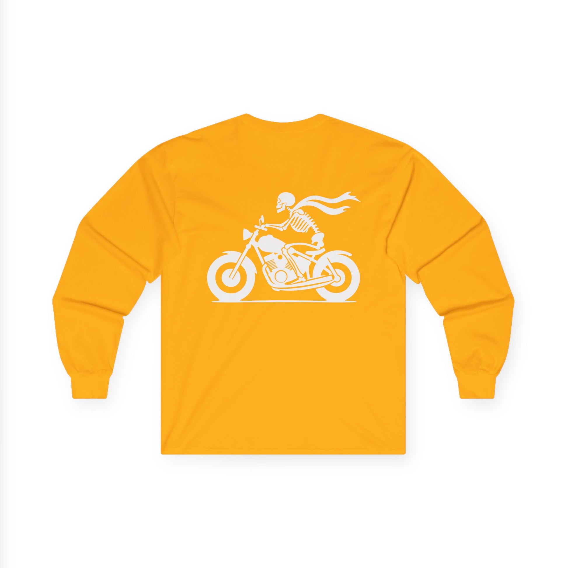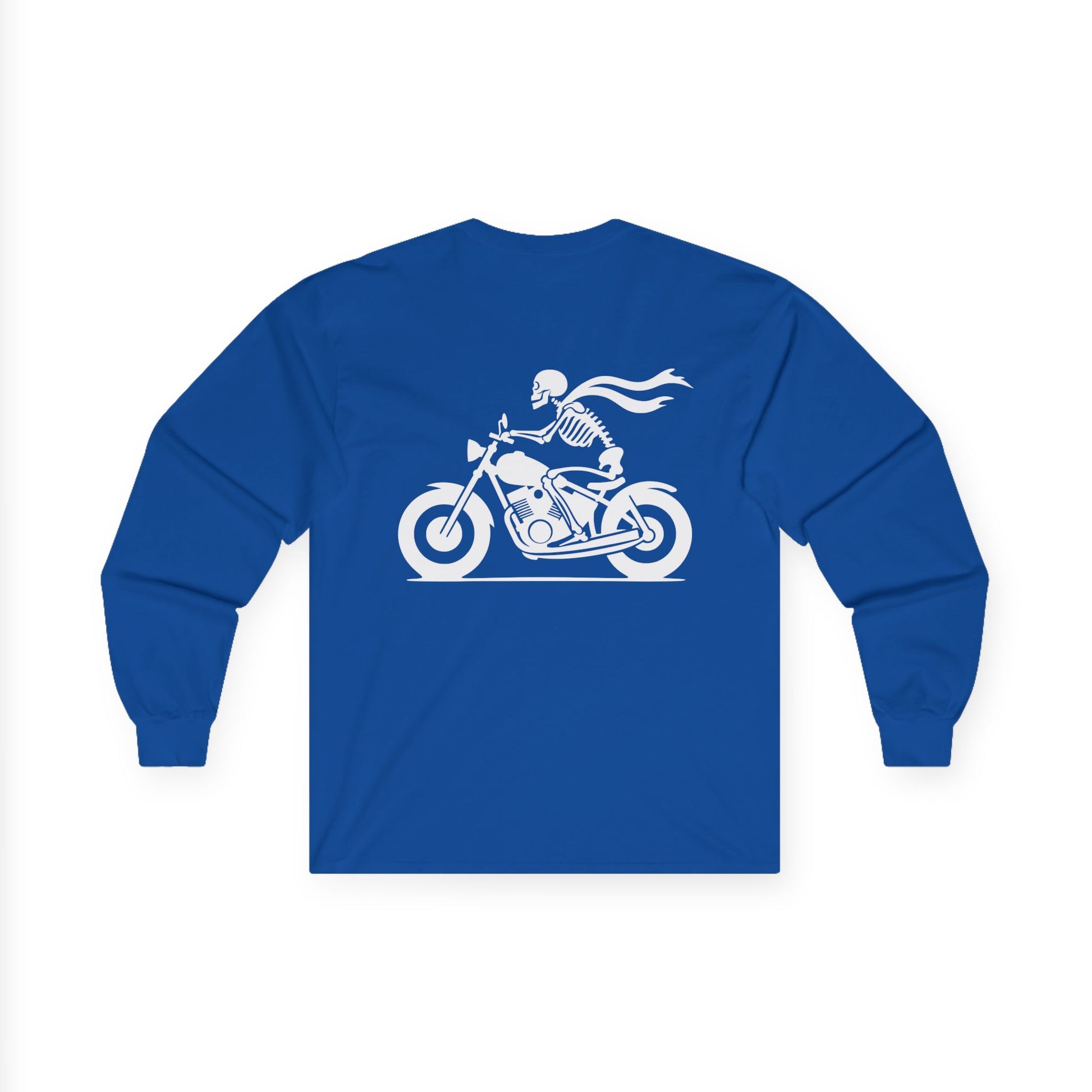 Skeleton Rider, Rad Moto Bunny, Unisex Long Sleeve Tee - Bold Graphic T-Shirt for Motorcycle Enthusiasts